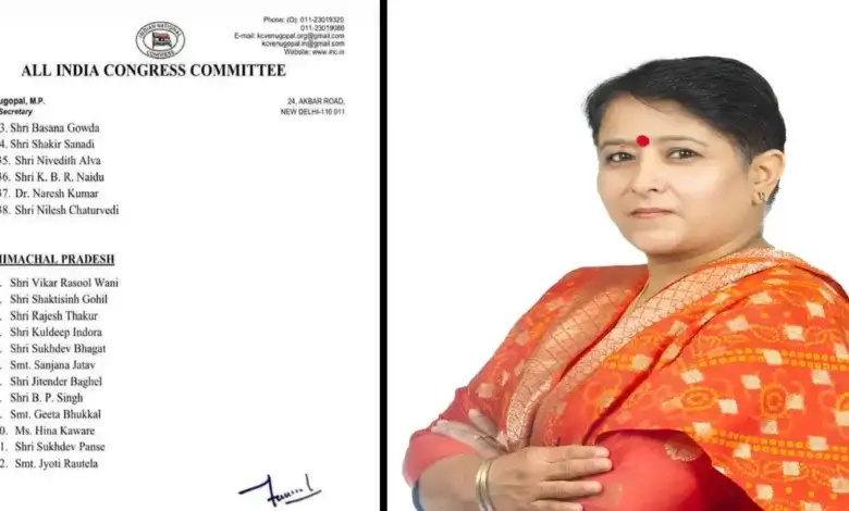 हाईकमान ने ज्योति रौतेला को सौंपी नई जिम्मेदारी — हिमाचल प्रदेश महिला कांग्रेस की ऑब्जर्वर नियुक्त, संगठन सृजन में देंगी नई दिशा
