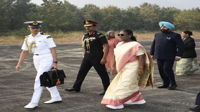 राष्ट्रपति द्रौपदी मुर्मू सोमवार को शाम 4:10 बजे हल्द्वानी के आर्मी हैलीपैड पहुंचीं। उनके आगमन पर पूरे क्षेत्र में सुरक्षा व्यवस्था कड़ी रही। उनके आगमन पर राज्यपाल लेफ्टिनेंट जनरल (सेनि) गुरमीत सिंह ने उनका स्वागत किया। राष्ट्रपति के हैलीपैड पहुंचने पर कैबिनेट मंत्री डॉ. धन सिंह रावत, महापौर गजराज सिंह बिष्ट, कुमाऊं आयुक्त दीपक रावत, एडीजी कानून एवं व्यवस्था वी. मुरुगेशन, आईजी कुमाऊँ ऋद्धिम अग्रवाल, जिलाधिकारी ललित मोहन रयाल, वरिष्ठ पुलिस अधीक्षक नैनीताल डॉ. मंजूनाथ टीसी, वरिष्ठ पुलिस अधीक्षक अल्मोड़ा देवेंद्र पींचा सहित अन्य अधिकारियों ने स्वागत किया।