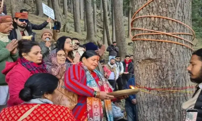 देवदार के पेड़ों पर बांधे रक्षा सूत्र